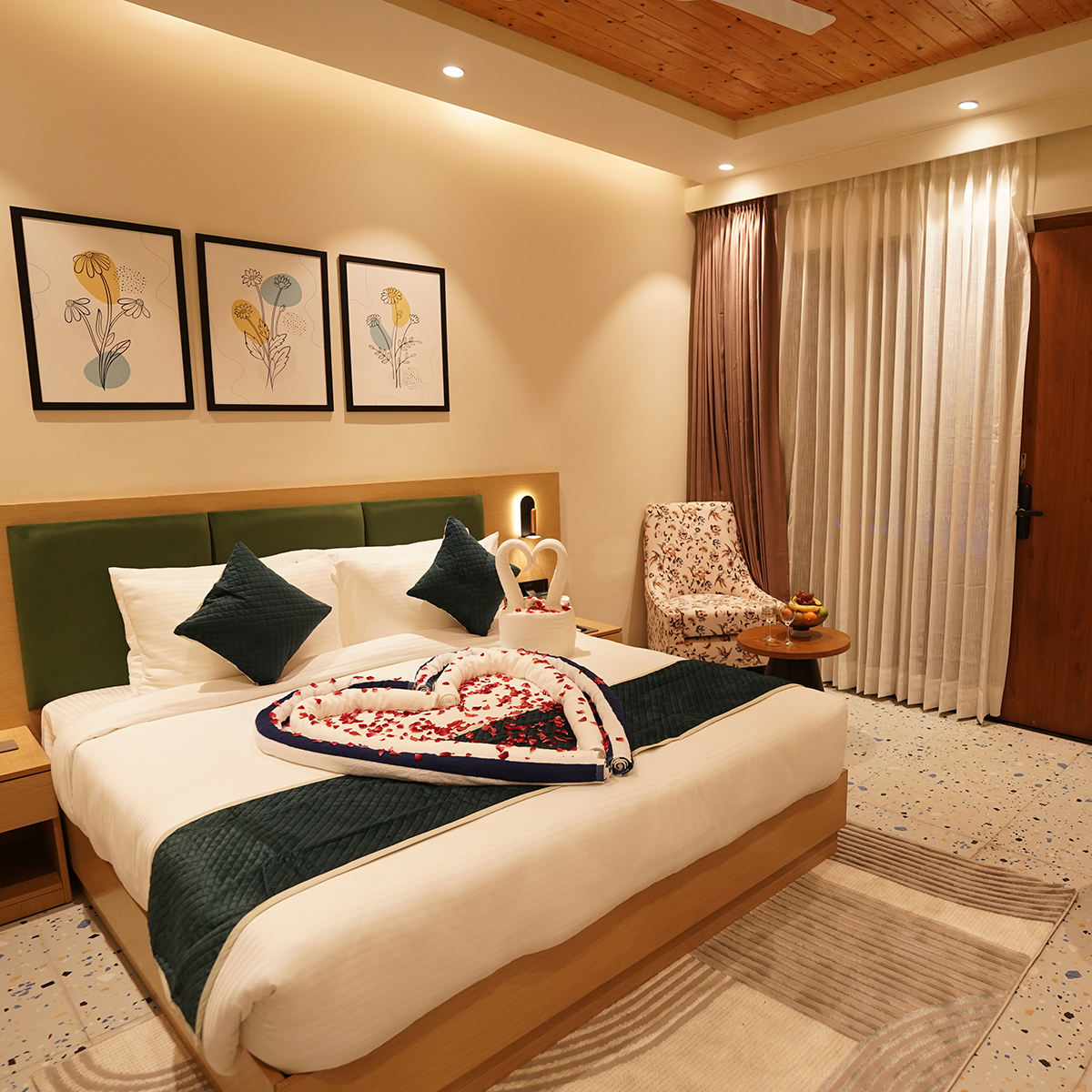 Experience comfort and charm in our thoughtfully designed Dushehri Room, spread across 350 sq. ft. Ideal for a relaxing stay, it features modern amenities, cozy interiors, and warm lighting. Whether you're here for work or leisure, the room offers a peaceful retreat with all essential conveniences.