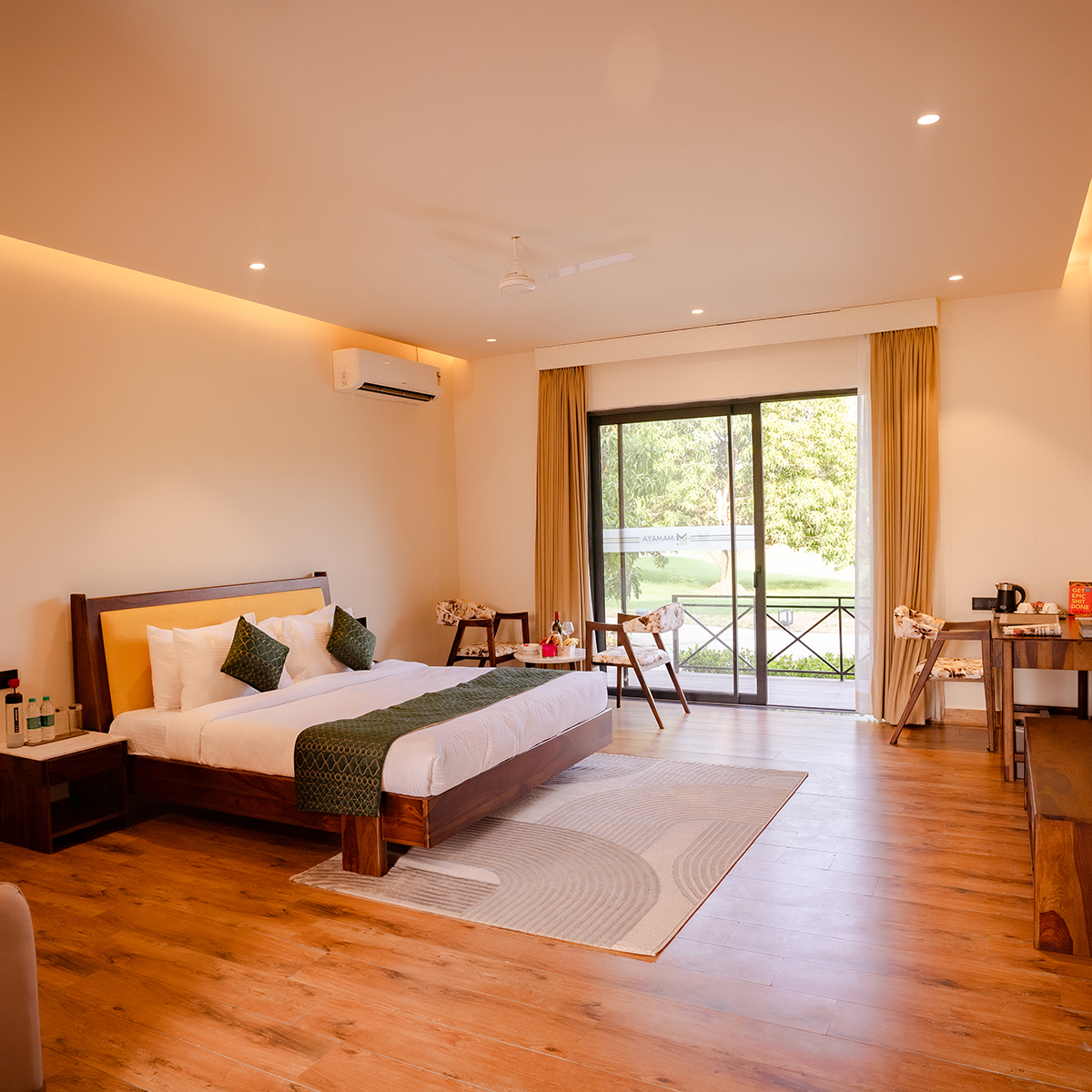 Spanning across the resort are vast open spaces and artistically landscaped gardens that offer beauty, peace, and multifunctional use. These spaces are ideal for early morning yoga, outdoor brunches, family picnics, or simply unwinding with a book under a tree. Designed with native flora and seasonal blooms, the gardens are visually stunning and attract birds and butterflies, adding to the charm. They also double as venues for outdoor events and weddings, offering flexibility without compromising elegance. The open-air environment plays a key role in the resort’s wellness-first philosophy.